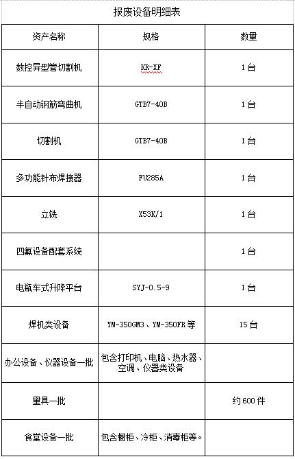 設(shè)備清單:見報(bào)廢設(shè)備明細(xì)表